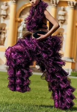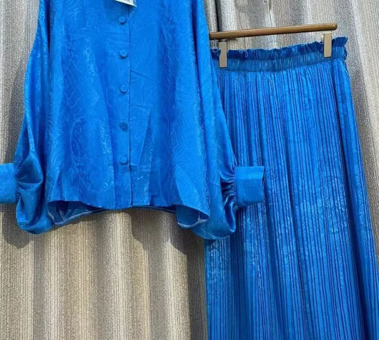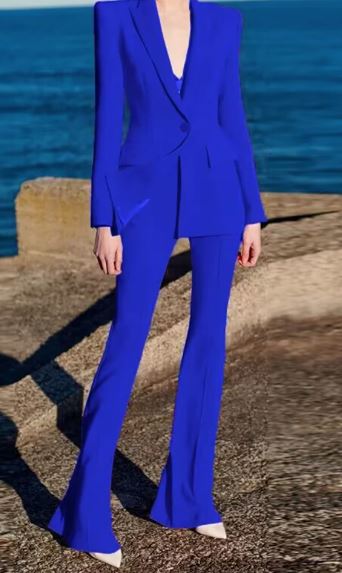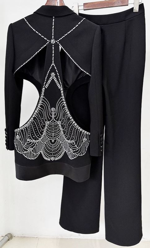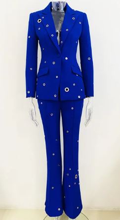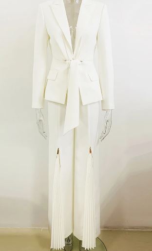 JACKET & WIDE LEG PANTS METALLIC RUCHED 2PC. SET